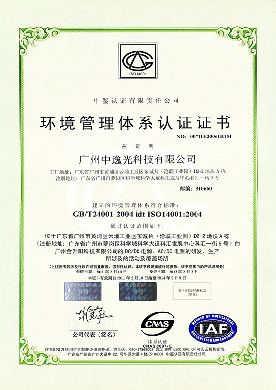 環境管理體系認證證書產品應用范圍 / APPLICATION
